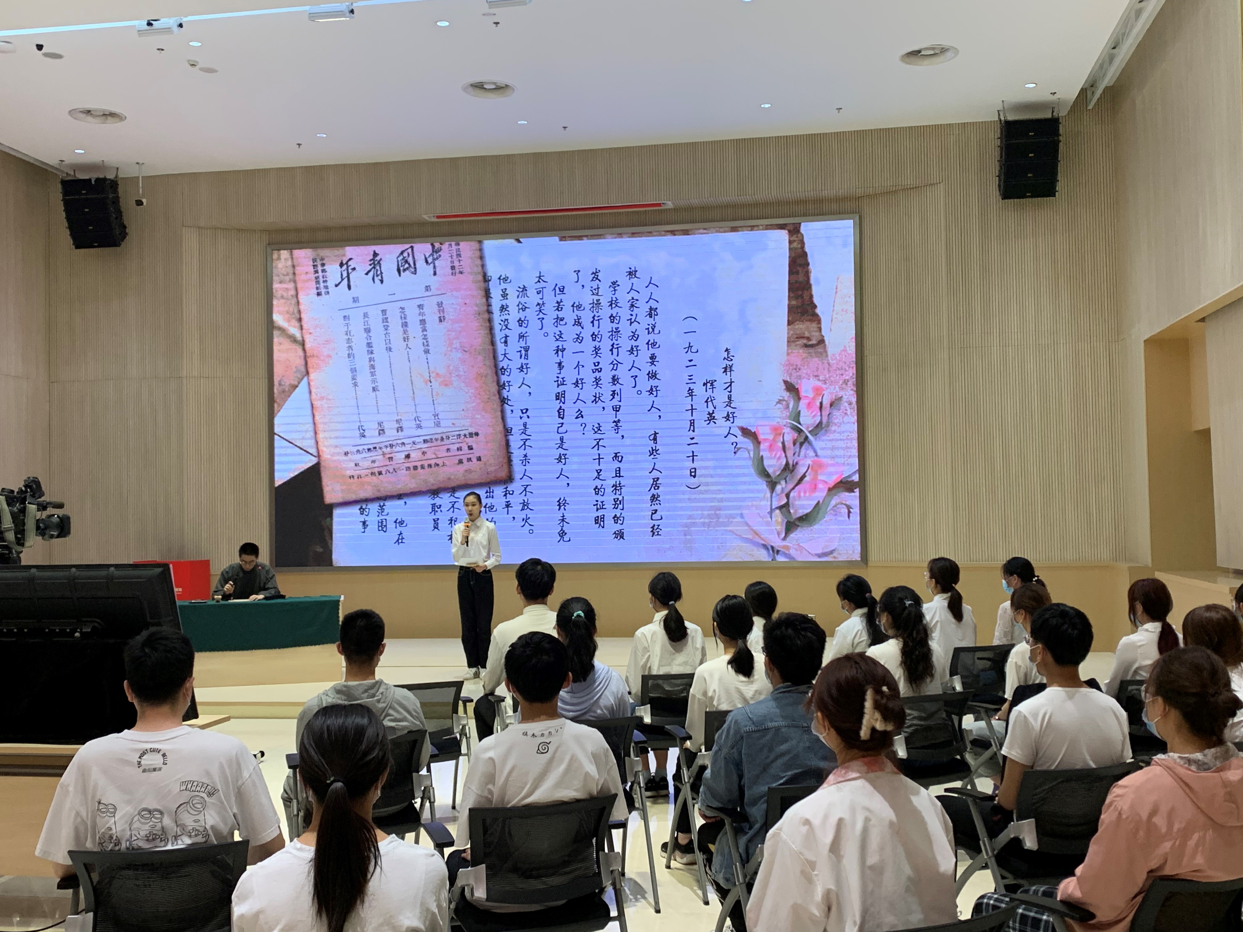 艺术系的志愿者们分别饰演了以恽代英、冷少农、成贻宾为代表的雨花英烈,通过描述烈士家书、文章以及当代青年回信,艺术化演绎了20世纪“00后”和21世纪“00后”穿越时空的对话,突出呈现了当代青年继承先烈遗志、传承红色基因以及建功时代新篇的理想信念。在可歌可泣的演出中,革命烈士对事业的执着、对人生的看法和他们对亲人的深情,通过志愿者的演绎得到了生动的体现。除此之外,演出中的当代青年对烈士的崇敬及其对未来的憧憬也十分令人欣慰。