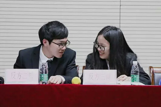 比赛进入白热化状态,我方三辩林金芬同学牢牢抓住对方的疏漏之处,向对方的一二四辩进行盘问,找寻对方的论证疏漏。在面对外语院三辩选手的提问,我方一二辩手回答问题,逻辑严明,紧扣本方观点,从容应对。