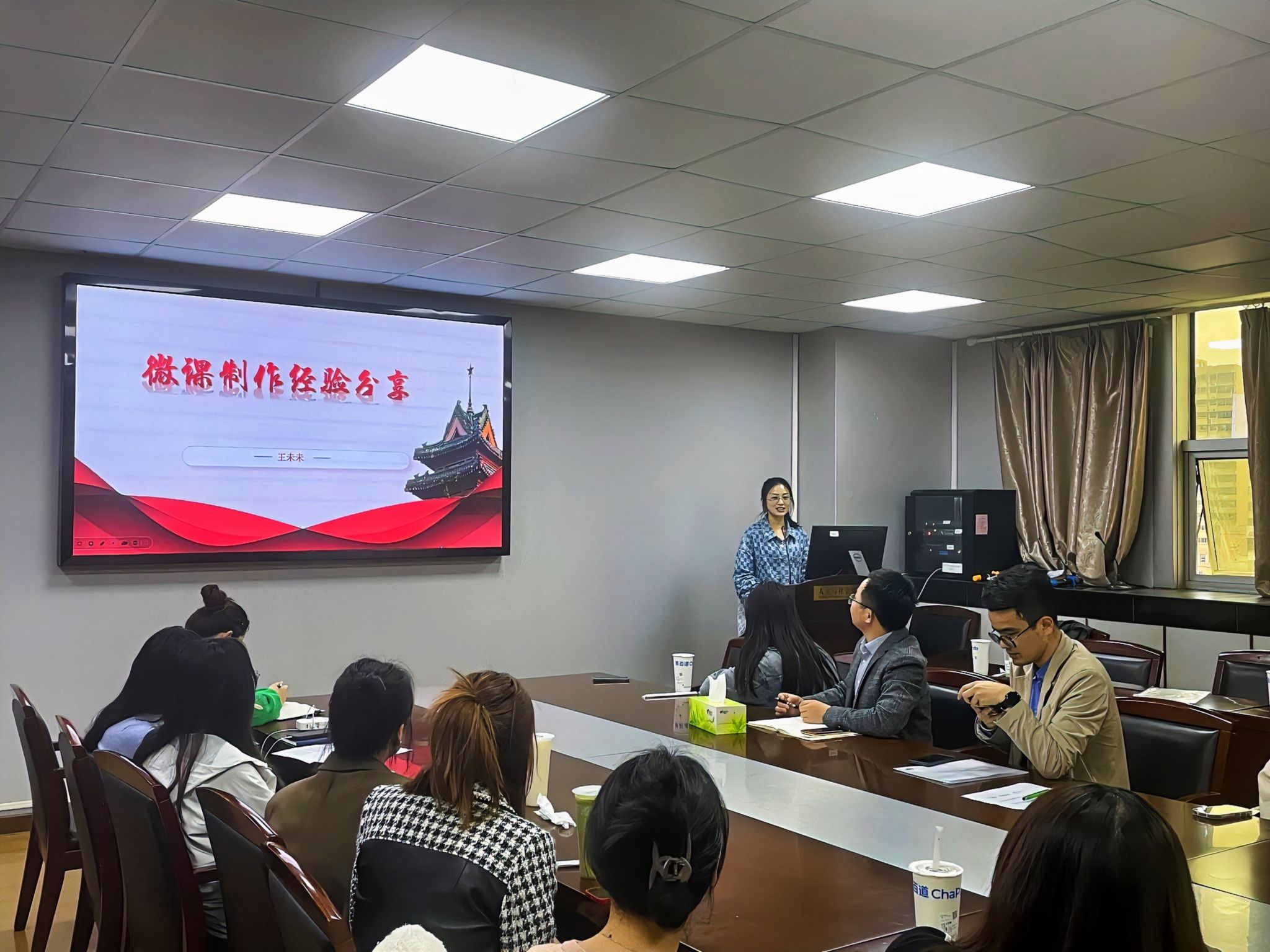 资环学院办公室主任王未未从选题、教学设计(方案)、拍摄、后期剪辑四个方面作,分享了微课制作经验,鼓励各位老师,运用微课教学,展现丰富的教学内容,提供灵活多样的学习方式,促进学生的主动学习和深度理解。她鼓励在场的辅导员做实一门课,做深一堂课,在具体的育人工作中激发工作热情,为培养更多具有爱国主义情怀和创新精神人才贡献力量。