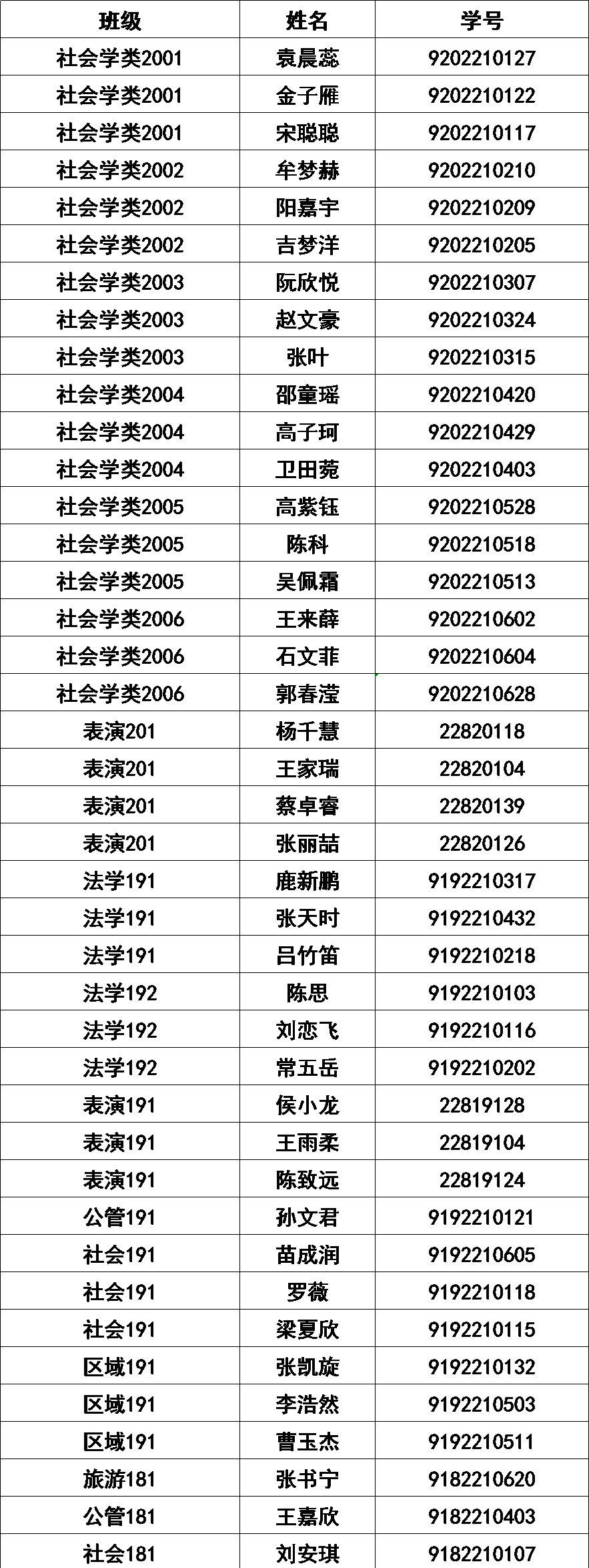 本科生积极分子名单