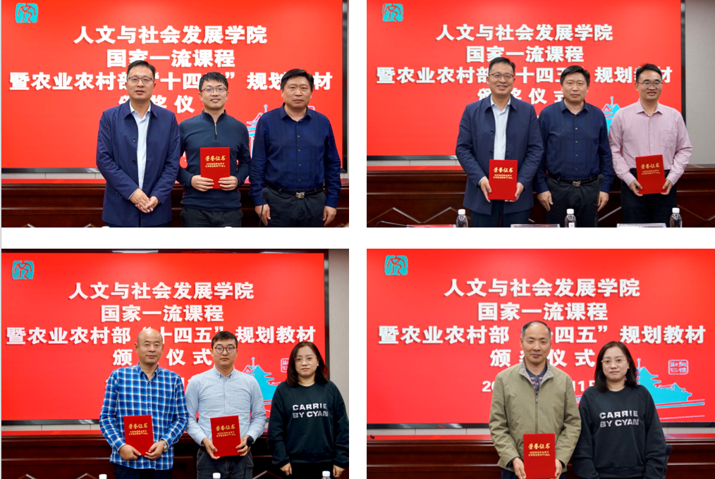 授课比赛前,由冯绪猛和戚晓明代表学院为国家一流课程、首批农业农村部“十四五”规划教材主持人颁发荣誉证书。
