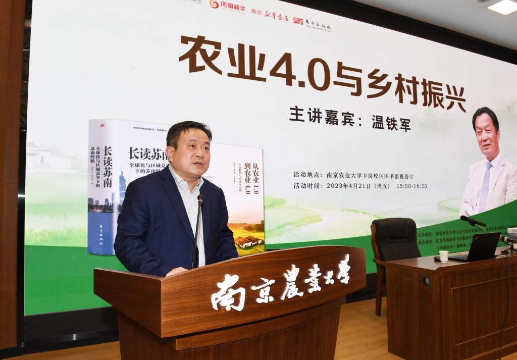温铁军向南农师生阐释了《从农业1.0到农业4.0》该书题目的由来,表示青年学子做研究最关键之处就是如何形成问题、如何构建清晰的问题意识,并鼓励在场的青年学子践行习近平总书记的殷殷重托,扎根调研一线,将论文写在中国大地上。