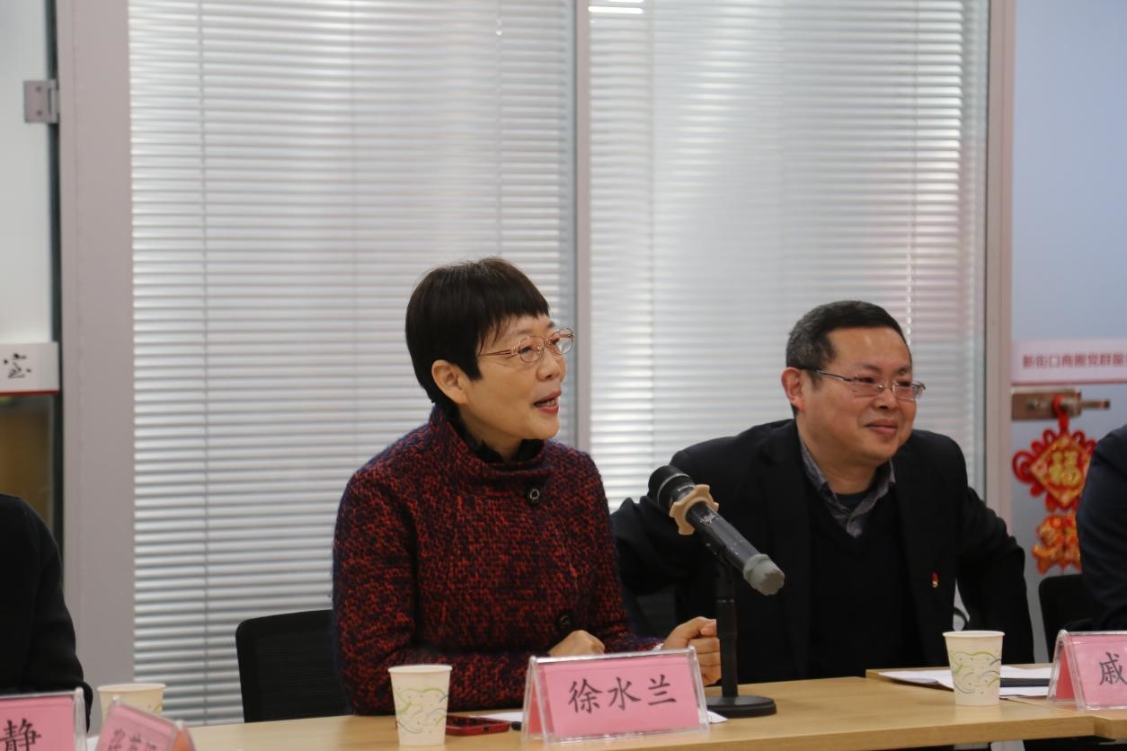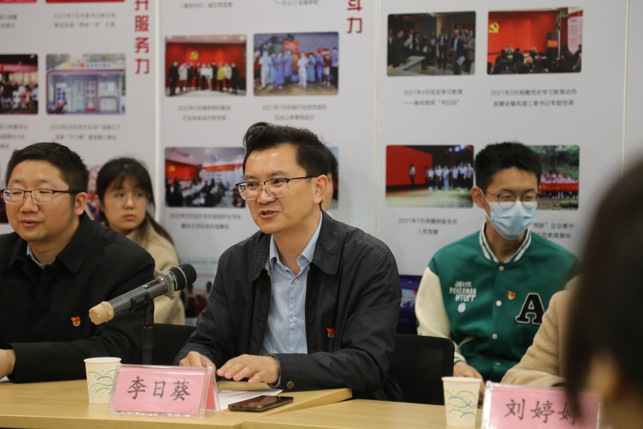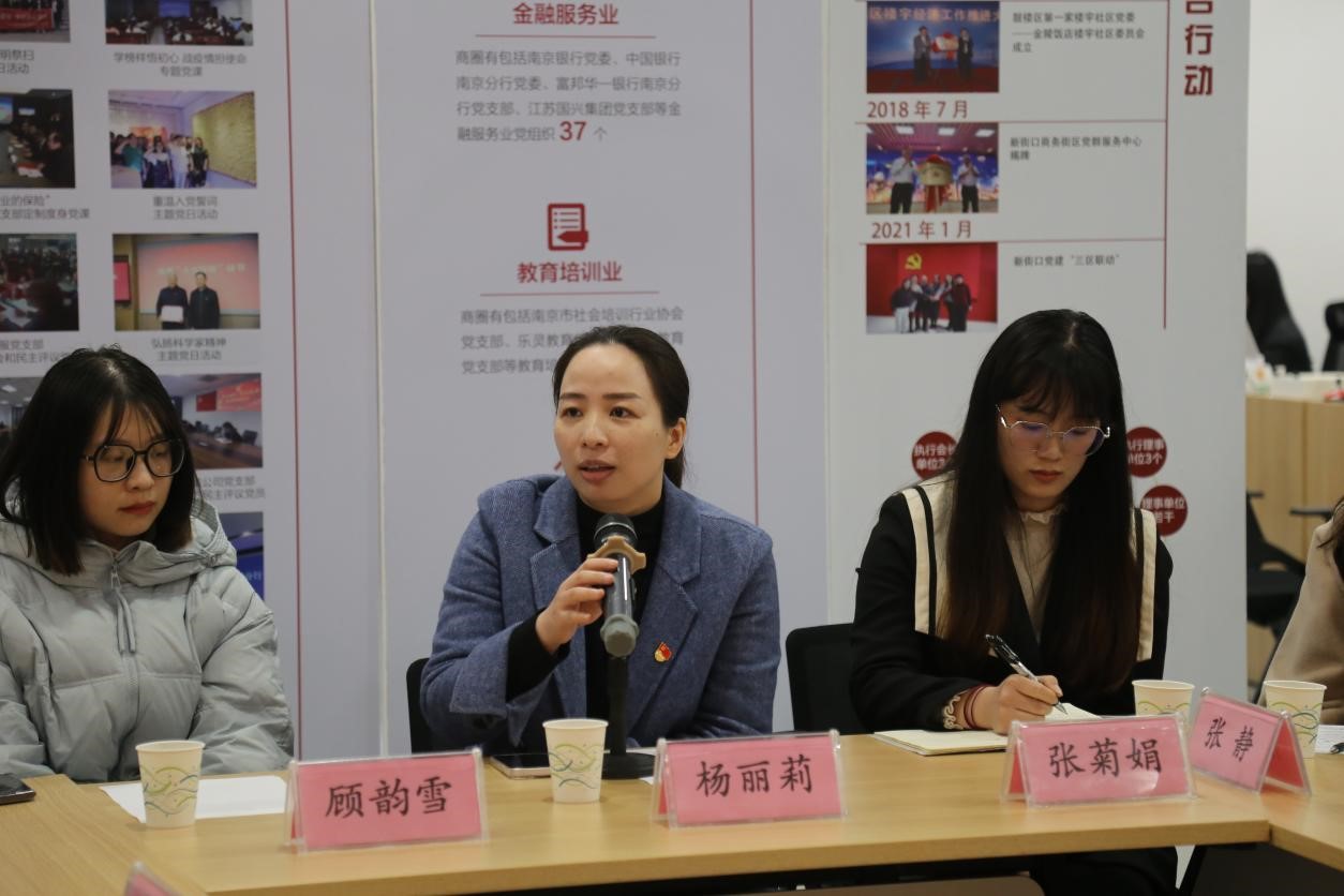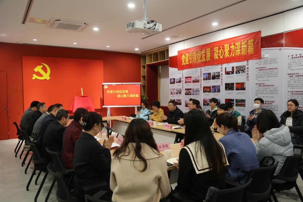 在新街口商圈党群服务中心,李日葵介绍人文学院开展“党建+”模式在引领学科交叉融合发展、凝聚师生团结奋进以及助力乡村振兴方向的目标和工作进展。戚秋生从商圈组织建设、队伍建设和联动发展三个方面,介绍了在新经济组织、新社会组织中开展“两新”党建,达到从促进企业、员工健康发展到促进商圈高质量发展的历程、工作方法和取得的成绩。与会的政企事业单位代表分别就党建工作方法、党建引领促进业务发展经验、优势互补、资源共享以及共建意愿进行了充分的交流。