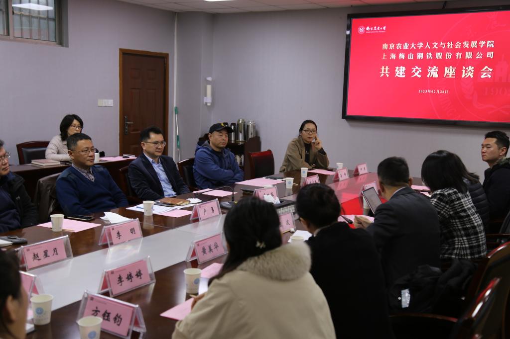 与梅山钢铁股份有限公司共建交流座谈会在逸夫楼6041召开,梅山钢铁股份有限公司党委宣传部、18av部部长、工会主席朱梅,梅山钢铁股份有限公司景区运营中心副经理黄美华,宝地南京产业资产经营分公司文旅经营部经理马志芹,南京大学MBA兼职导师、南京中智文化创意研究院院长王波及梅山钢铁股份有限公司18av部的工作人员一行十人莅临18av