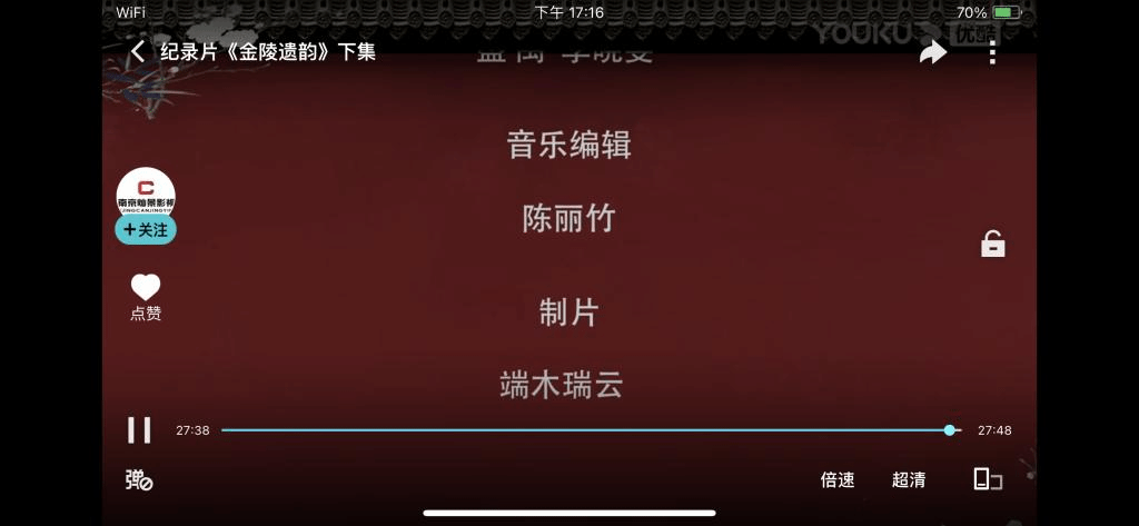 《金陵遗韵》是一部文化纪录片,由陈丽竹老师担任全片音乐编辑与后期深度制作。陈丽竹老师充分发挥自身专业优势,在拍摄现场反复和编导团队进行磋商与沟通,并和多位国家级非遗传承人进行深度交流。本片通过讲述非遗传承人的故事,介绍了非遗项目巧夺天工的技艺,展示了古都南京非遗保护所取得的巨大成就。本片结合南京厚重的历史文化,以千年流淌的秦淮河与巍峨雄壮的紫金山为经纬,将历史空间和非遗技艺巧妙糅合,串起昆曲、绒花、精细木作、金陵刻经、金箔锻制、云锦织造六项非遗技艺,弘扬了孔爱萍、赵树宪、杨金荣、马萌青、葛才金等一批非遗传承人锲而不舍、排除万难,努力把南京的非物质文化遗产继承下来、传播出去,使之发扬光大的伟大精神。 目前本片已在江苏省广播电视总台、央视新影《老故事频道》、央视国际《长城精品频道》、南京电视台和优酷平台播出,播出覆盖面广,反响热烈。