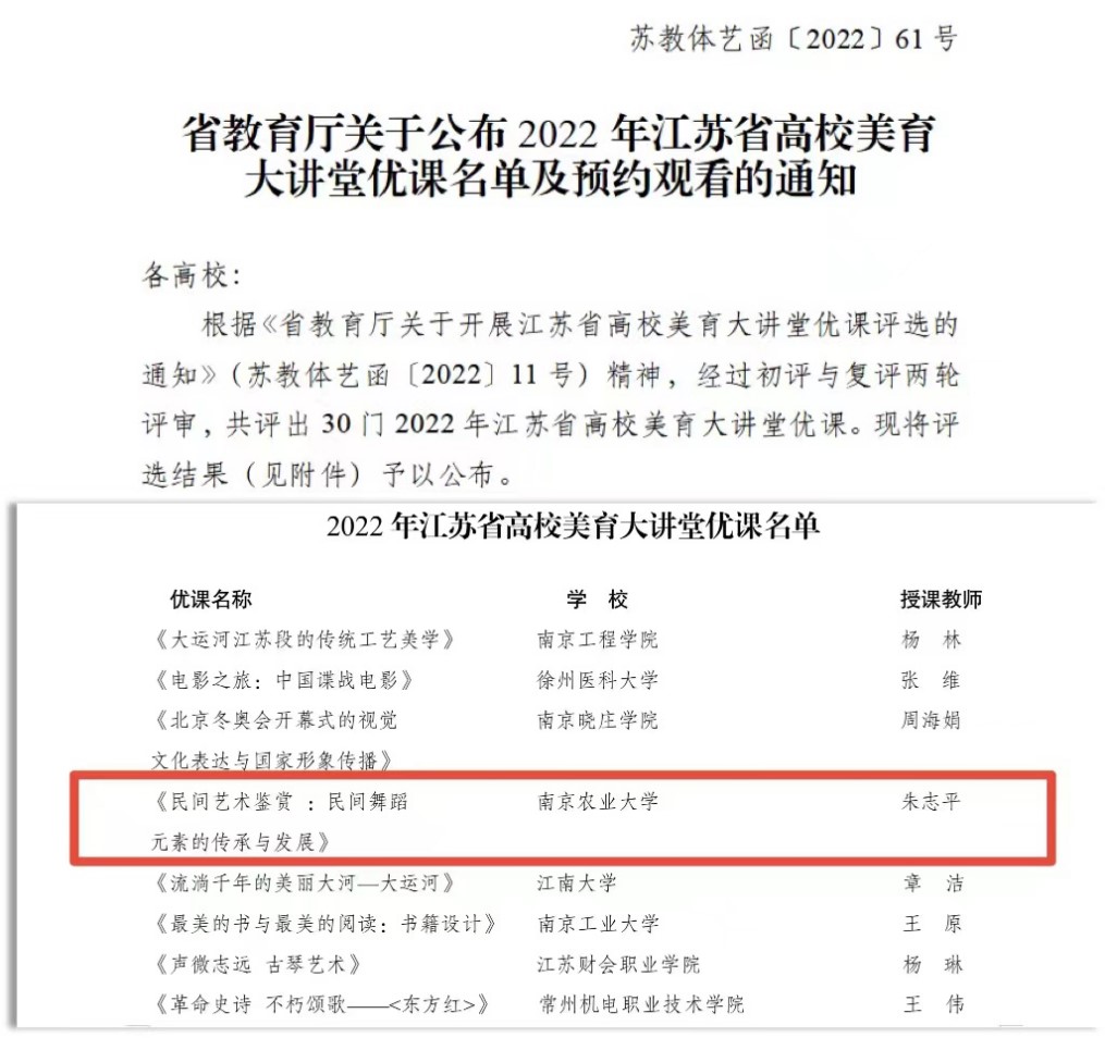 近日,江苏省教育厅公布了2022年江苏省高校美育大讲堂优课评选复评结果,18av