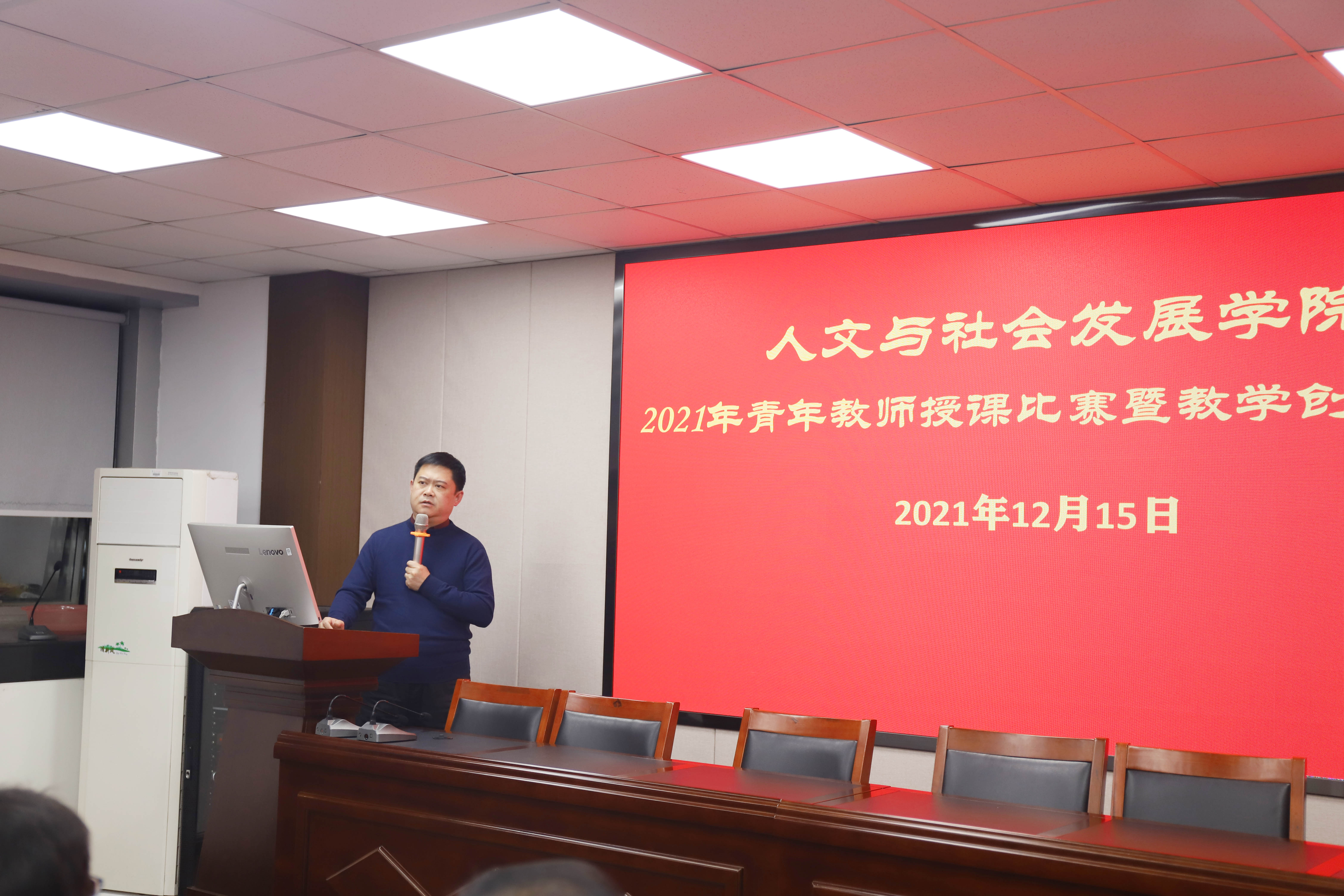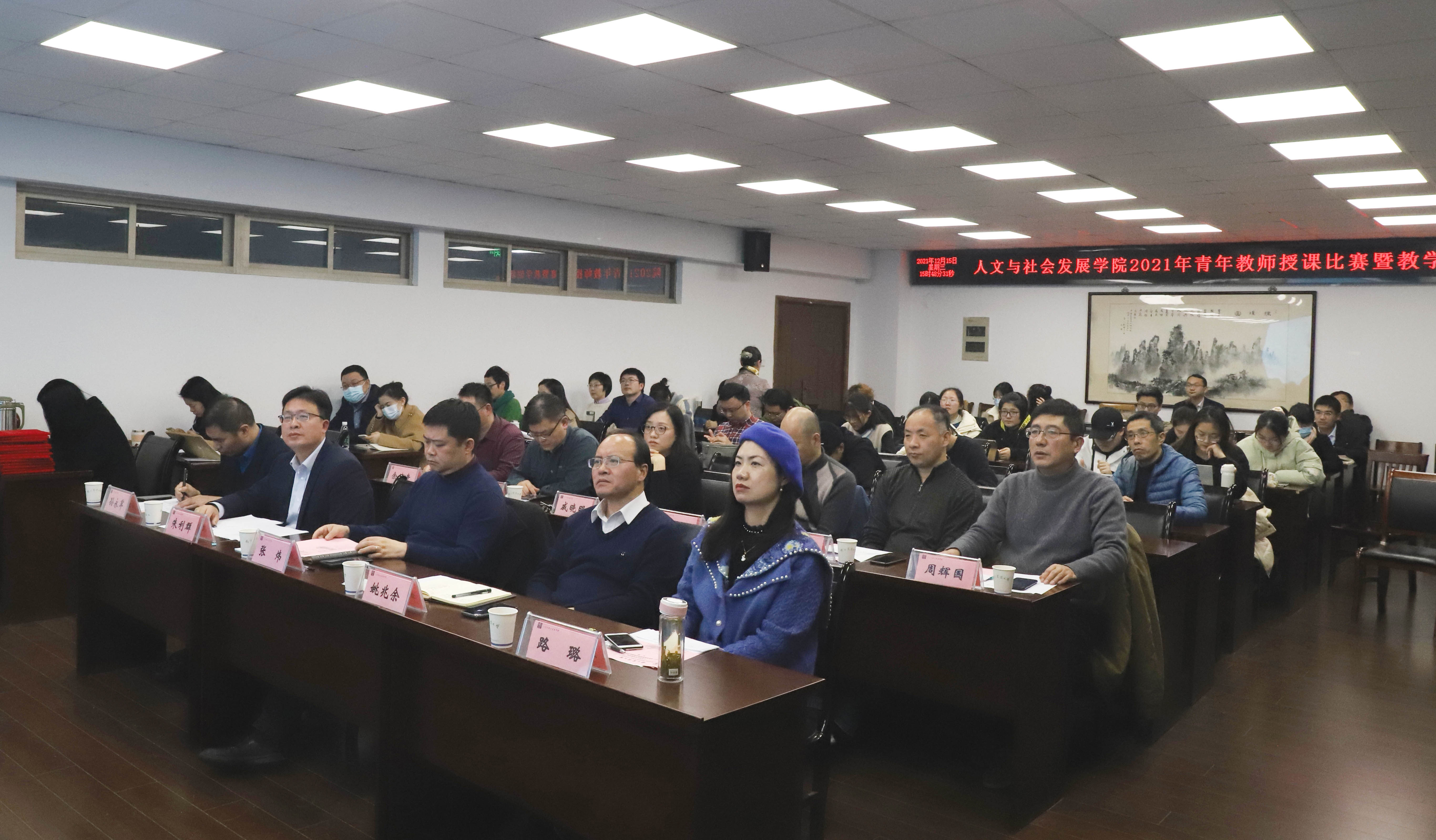 2021年青年教师授课比赛暨教学创新大赛在逸夫楼6047会议室隆重举行。学校教务处处长张炜,学院院长姚兆余、副院长路璐、副院长朱利群、社会学系主任戚晓明、旅游系主任崔峰、文化管理系主任李明、农村发展系主任余德贵、法律系主任孙永军、艺术系主任周辉国、科技史系主任沈志忠担任评委。学院青年教师现场观摩学习。艺术系王菲老师担任主持。