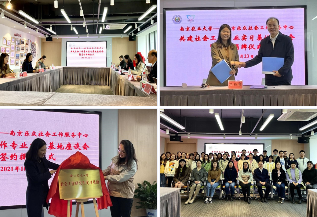 社会工作硕士(MSW)教育中心与南京乐众社会工作服务中心、心苑社会工作服务中心举行社会工作研究生实习基地共建仪式。
