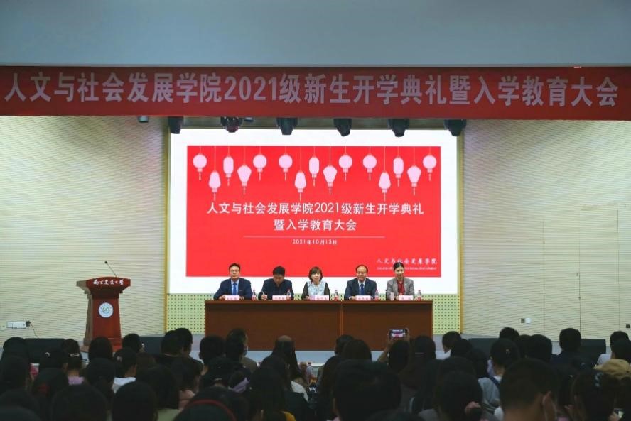姚兆余致欢迎辞,表达了对2021级新生的欢迎之情。他从历史悠久、底蕴深厚,师资雄厚、人才辈出,学科专业门类众多,重视科研、成果丰硕,崇尚人文、服务社会,开放交流、兼容并蓄六个方面介绍了学院的基本情况,并对所有新生提出了四点希望:一是要坚定信念,树立崇高理想;二是要珍惜时间,不负青春韶华;三是要全面发展,提升综合能力;四是要关注社会,践行人文关怀。