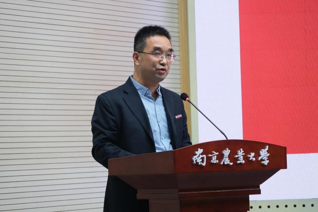 社会学系郭文教授代表教师发言。他分享了自己的学习经历与工作感悟,勉励同学们要发展成为兼具世界眼光和本土情怀的南农学子;鼓励同学们适应角色转变与调整,做好自我规划管理;最后,他强调作为人文大家庭的新成员,要见贤思齐,加强同老师和学长学姐的沟通,增强对人文学院的热爱之情。