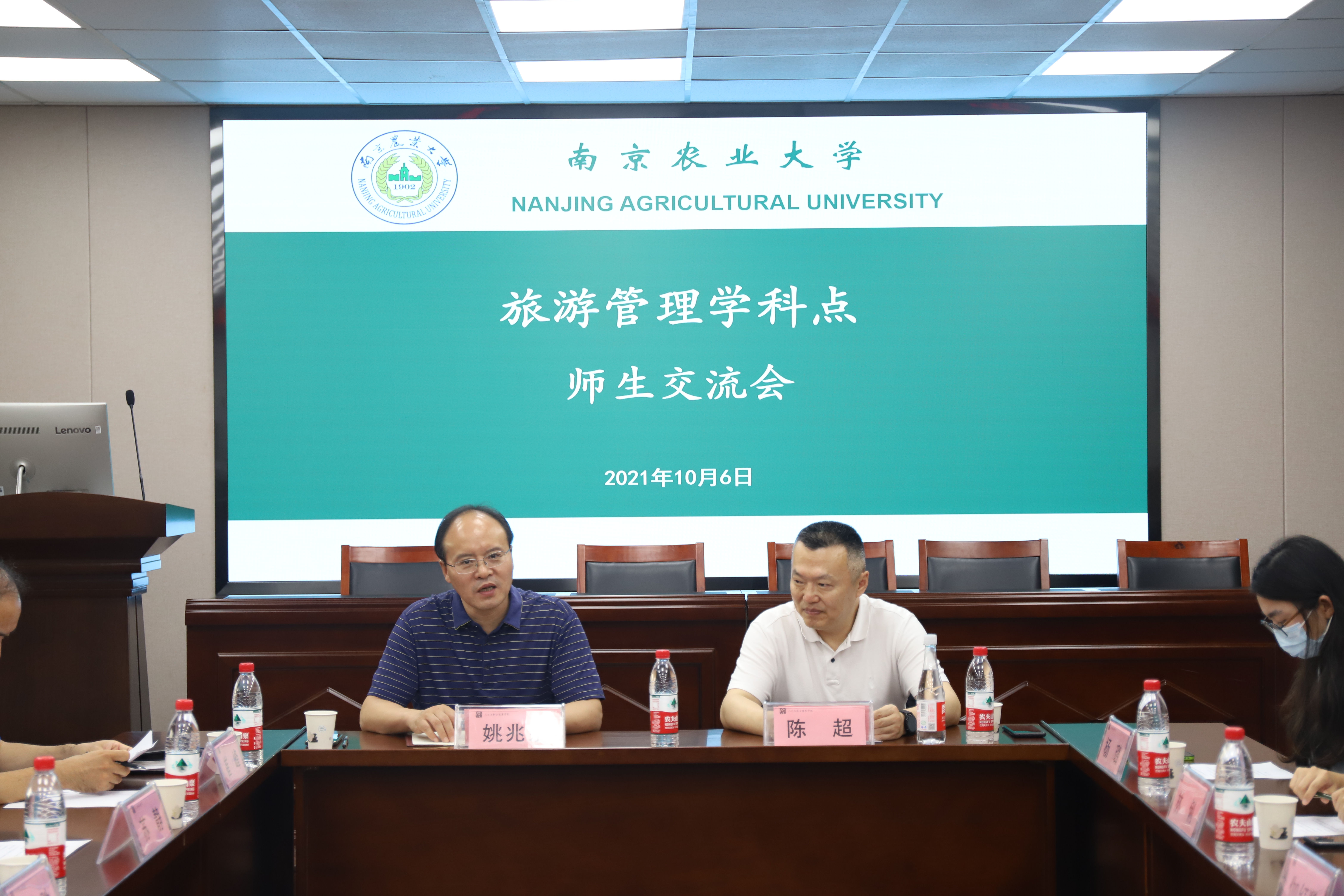姚兆余向研究生介绍了学院基本情况,指出加强师生交流和互动的重要性,希望旅游管理学科充分利用学校的优势,进一步凝练学科方向,将科学研究与“三农”、乡村振兴等重大理论和实践问题紧密结合,加快构建具有南农特色的学术研究和人才培养体系。