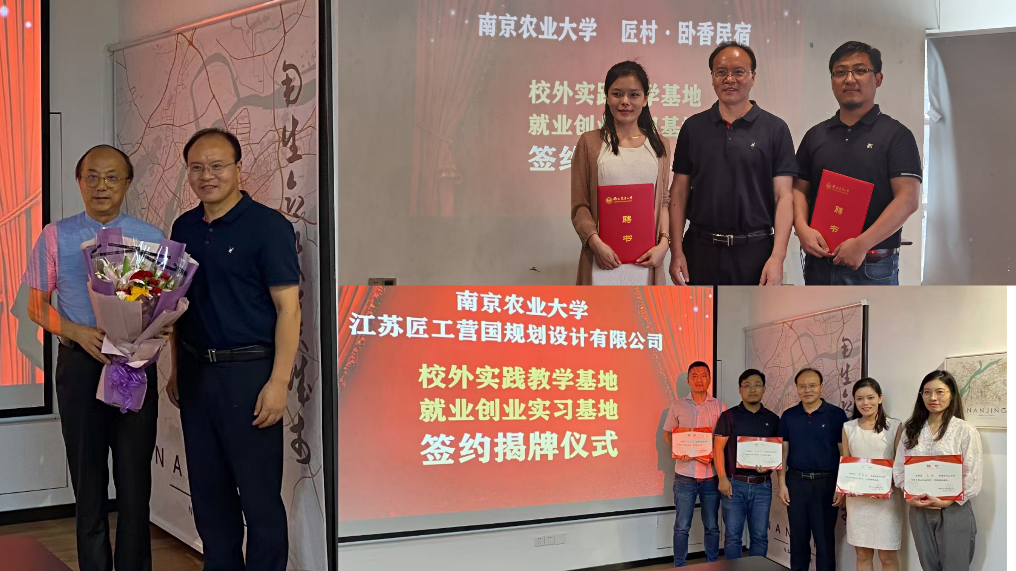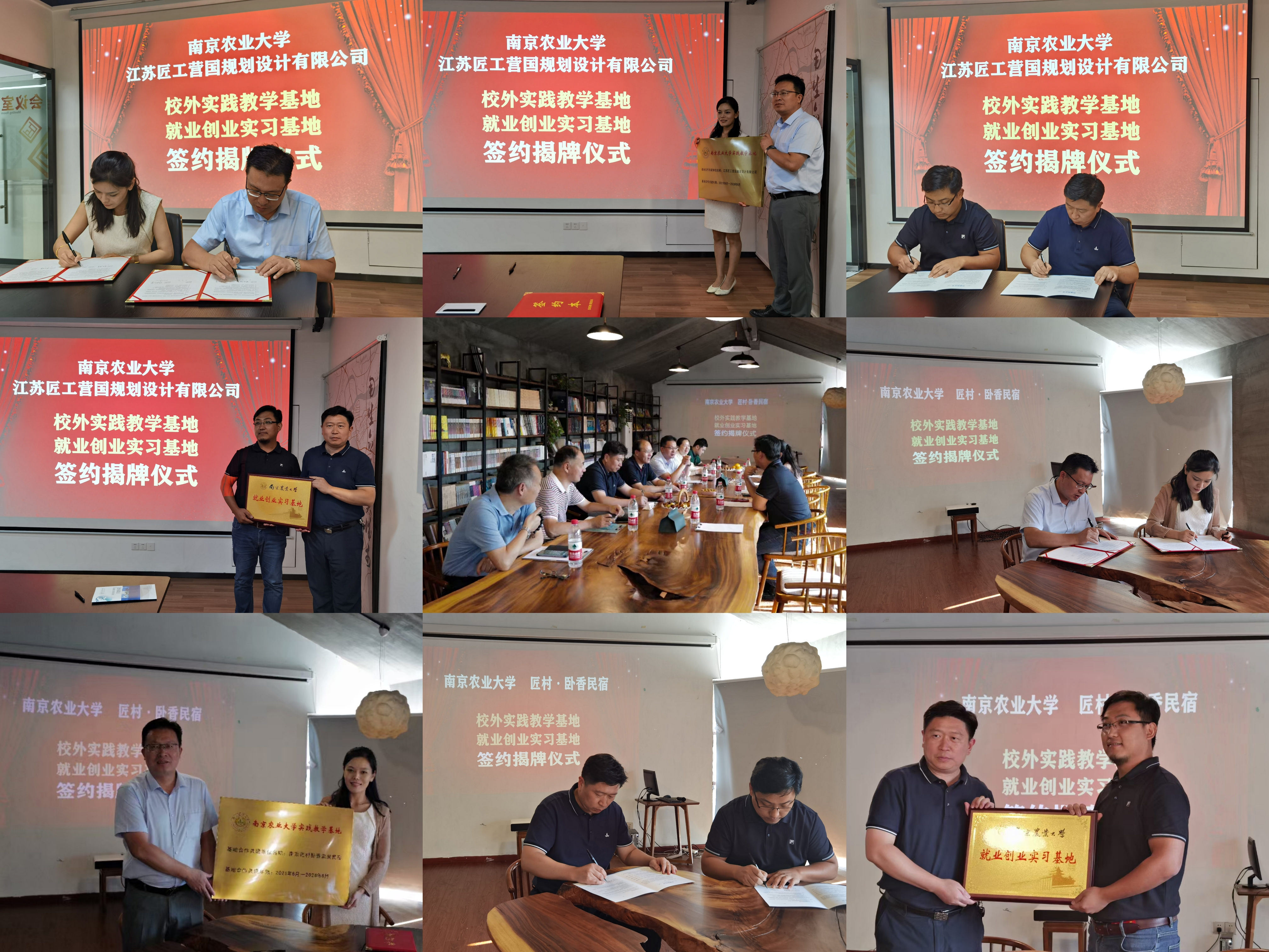 就业创业基地的签约和揭牌仪式,在江苏匠工营国规划设计有限公司举行。学院院长姚兆余、学院党委副书记冯绪猛、副院长朱利群出席仪式,旅游管理系主任崔峰和刘庆友、黄颖老师,学院学生辅导员林延胜参加了活动。