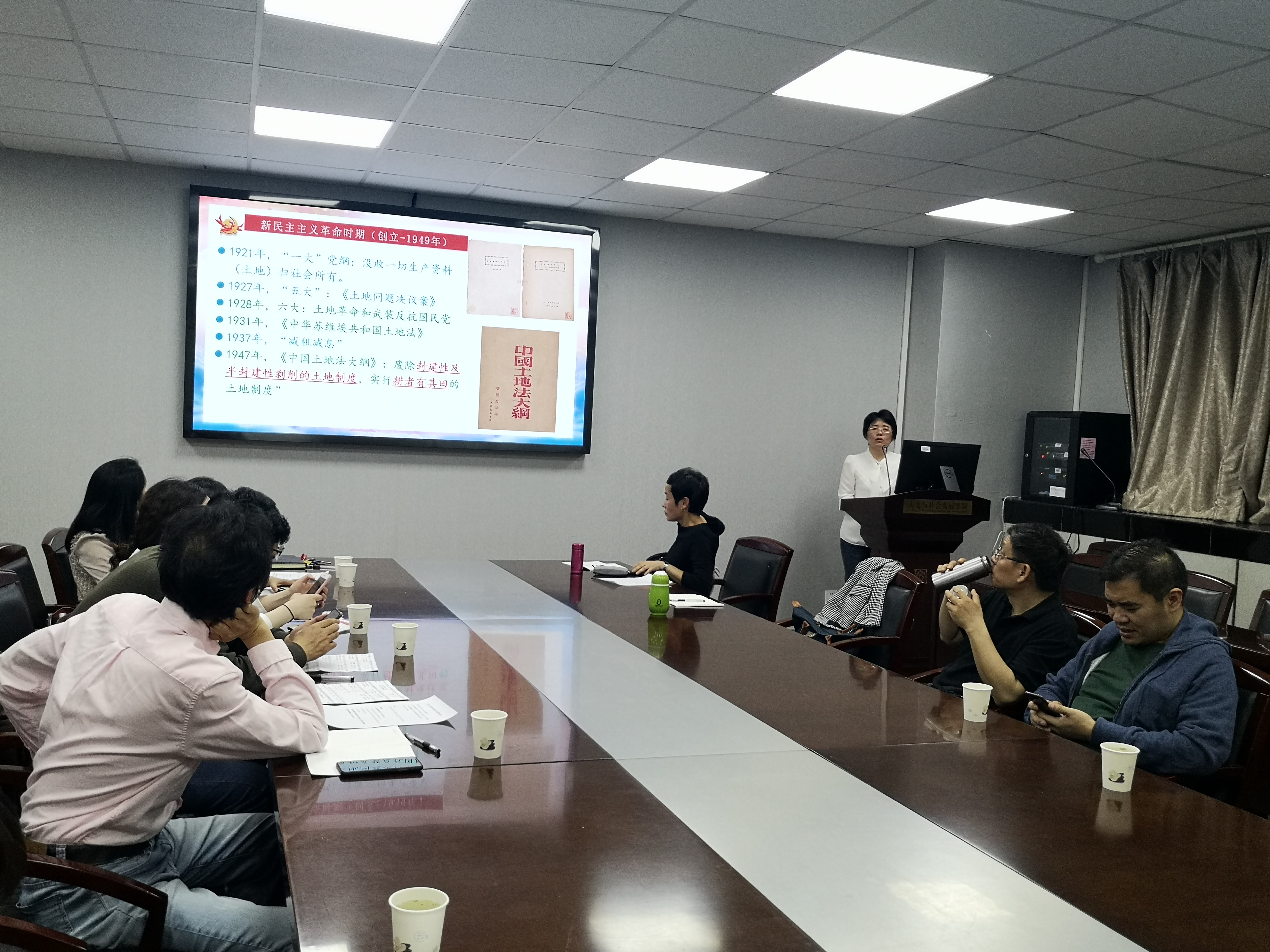 法律系教师党支部书记尹雪英老师给大家带来一场《执政为民:党的农村土地政策回顾》的支书党课,梳理了党从创立之始就以农村土地问题作为革命重要组成部分,领导农民群众实现了“耕者有其田”千年夙愿,并在社会主义建设中立足中国国情,坚持改革创新,探索了具有中国特色的社会主义农村土地制度。通过历史回顾,感悟党的立党为公、执政为民的执政理念。
