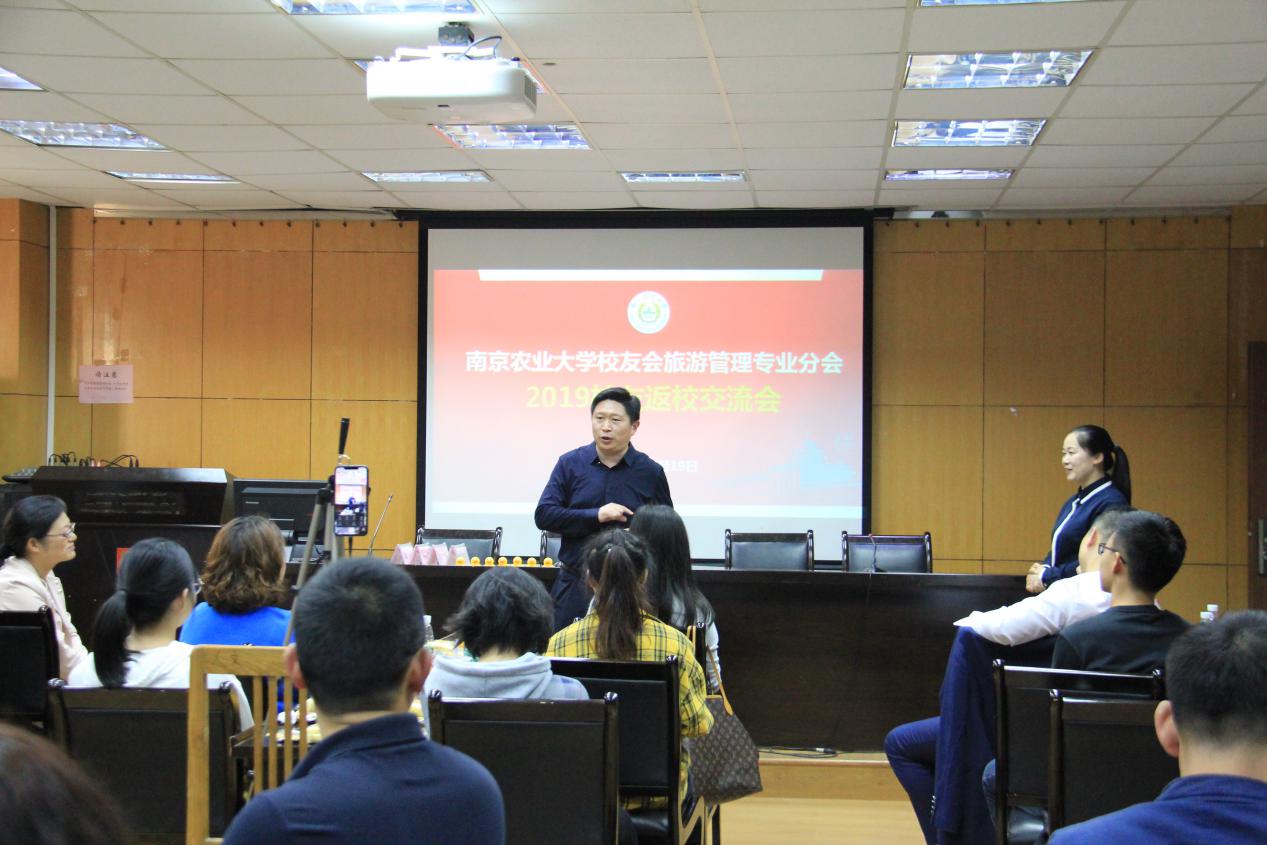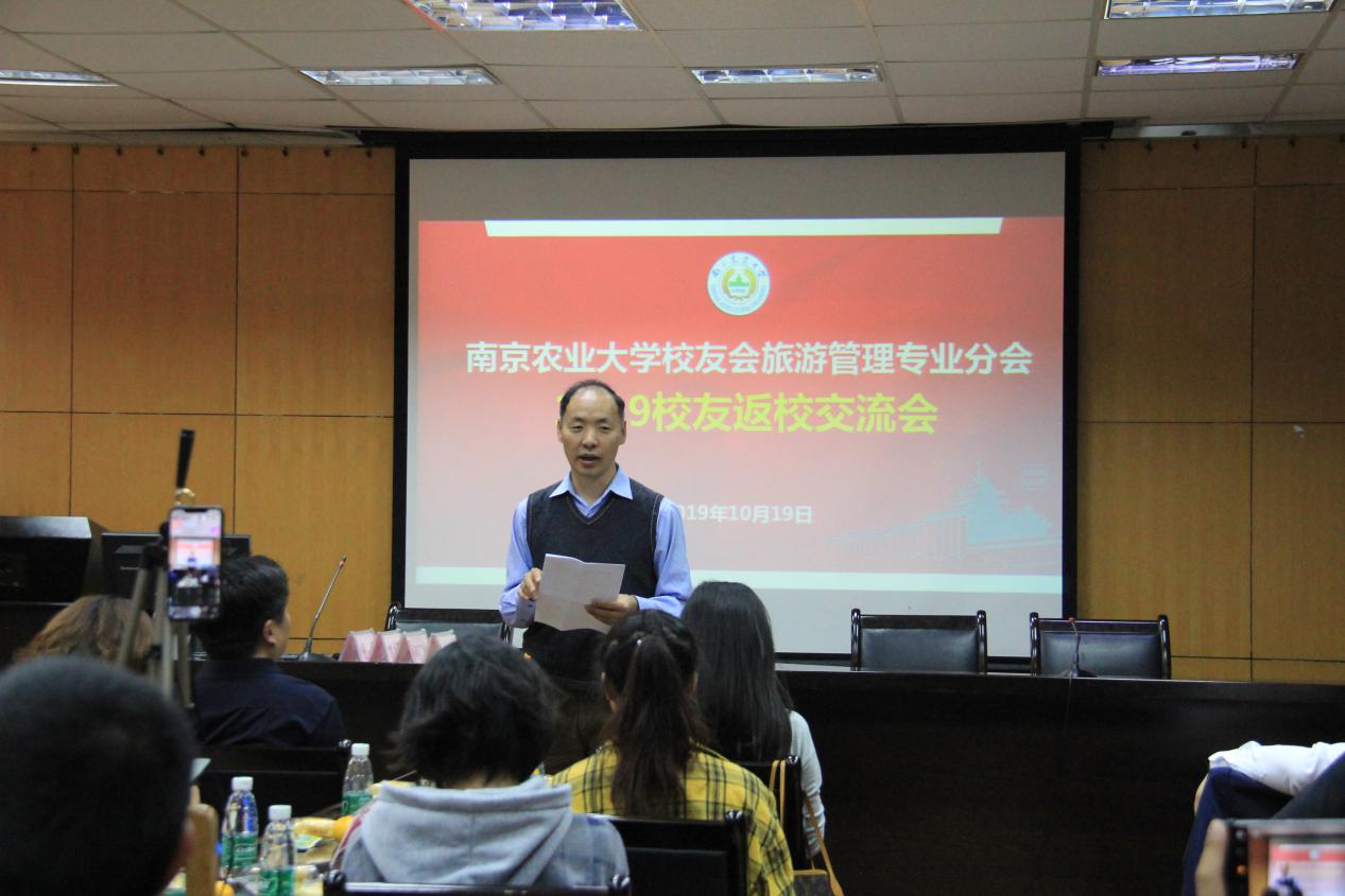 旅游管理系主任、旅游管理专业校友分会常务副会长崔峰介绍旅游系近年来的发展变化与取得的成绩。