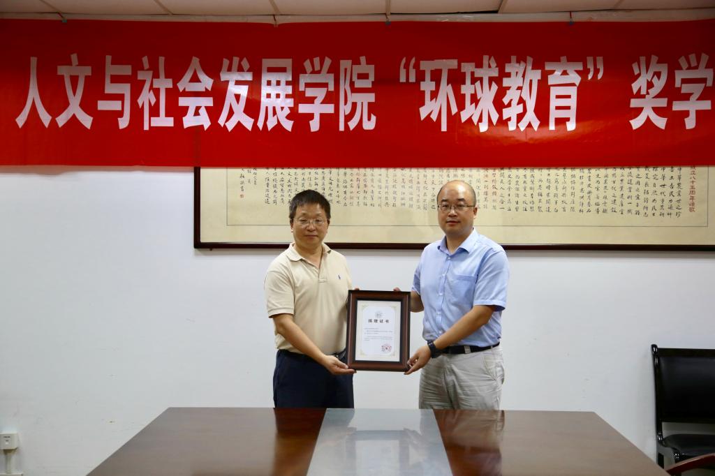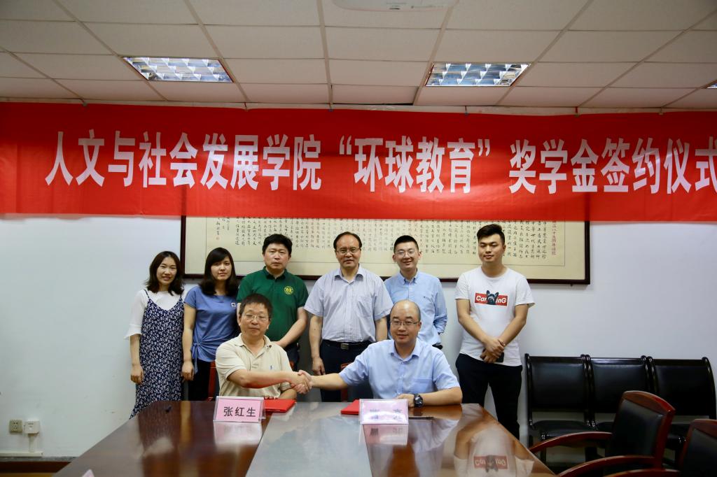 发展委员会办公室主任张红生与南京环球学校校长曹亮签约,设立总计十万元的“环球教育奖学金”,张红生为南京环球教育学校颁发捐赠证书。同时,姚兆余代表人文学院聘请曹亮为18av