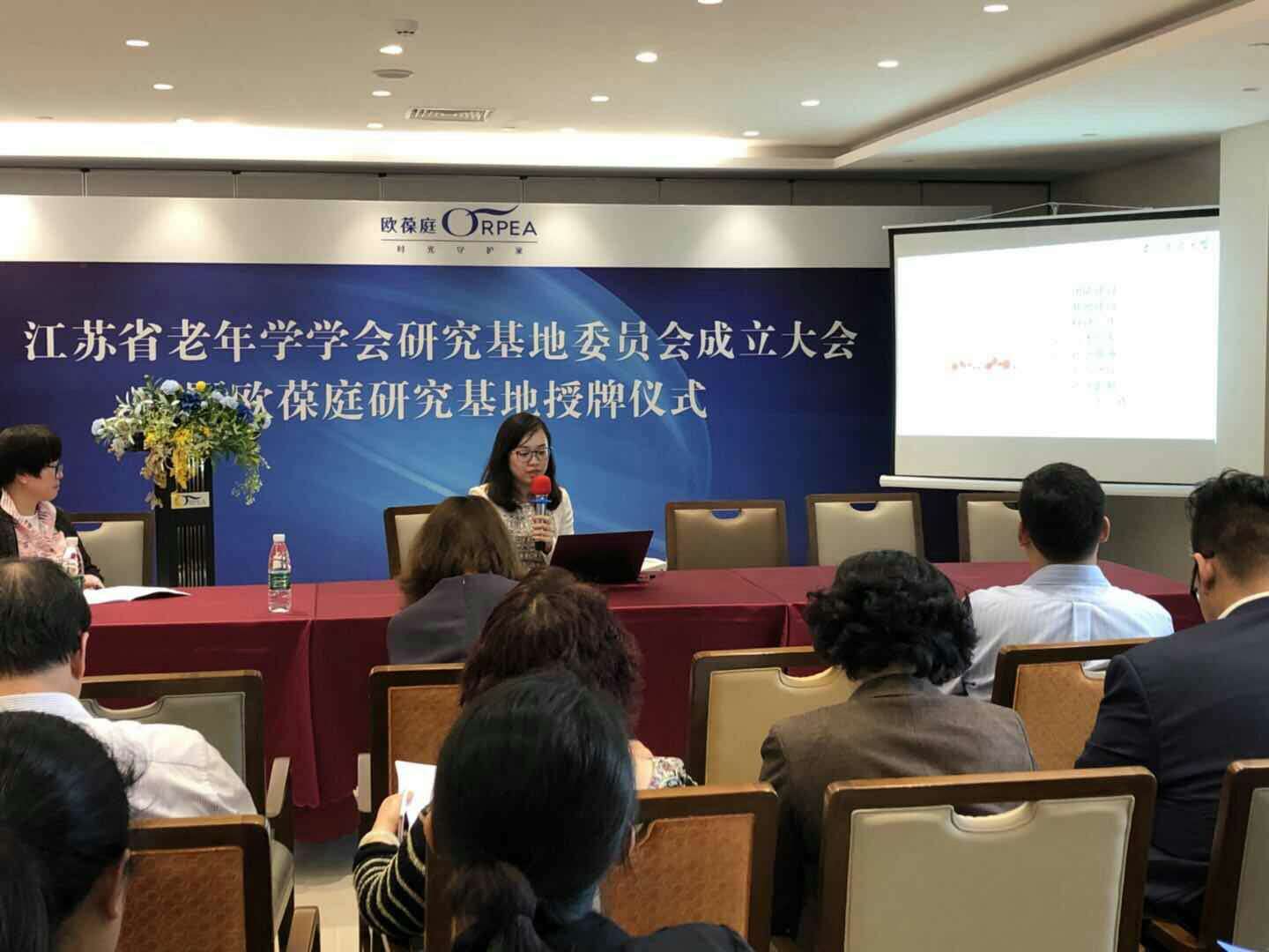 2018年5月5日,江苏省老年学学会研究基地委员会成立大会在欧葆庭仙林国际颐养中心举行,江苏省老年学学会施国庆会长、程晓副秘书长、黄萍秘书,欧葆庭法方代表Powlas女士,以及18av