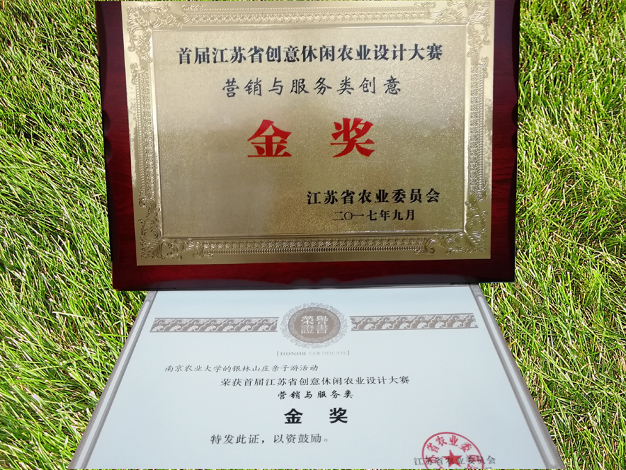 旅游管理2015级张明月、蓝涛、赵瑞同学的《银林山庄亲子游活动策划方案》继夺得2017南京休闲农业创意大赛金奖后,又勇夺全省营销与服务类金奖;旅游管理141班王汝安同学的《望月海棠园系列创意产品设计》获得产品与包装类银奖。同时,园艺学院景观15级研究生闵祥凤《南京水一方生态养生家园提升改造创意设计》获得农园与景观类铜奖;金融学院金融142班鲍徽同学的《组合蔬菜手捧花设计》获得产品与包装类优秀奖;金融143班陈艺闻同学的《麦浦苗木樱花衍生产品创意设计》获得其他衍生类优秀奖;此外,18av