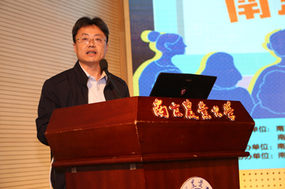科学研究院产学研合作处处长马海田致欢迎辞。随后,主办方代表南京市农业委员会农业服务业处长郭双庆、副处长刁兵,中央农业广播学校南京分校校长周一波,共青团南京市委员会统战部副部长朱伟上台,为校方代表18av
