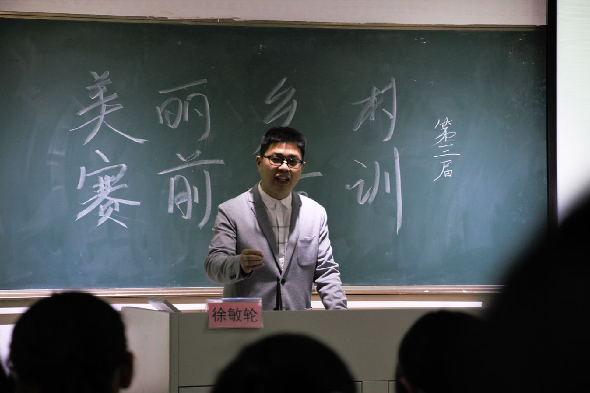 3月11日晚,“美丽乡村”建设发展大赛赛前培训会在教学楼c301顺利举行,参赛选手积极参加。本次培训会邀请区域农业研究院徐敏轮老师为参赛选手进行赛前指导。第二届“美丽乡村”优秀团队进行了经验分享。