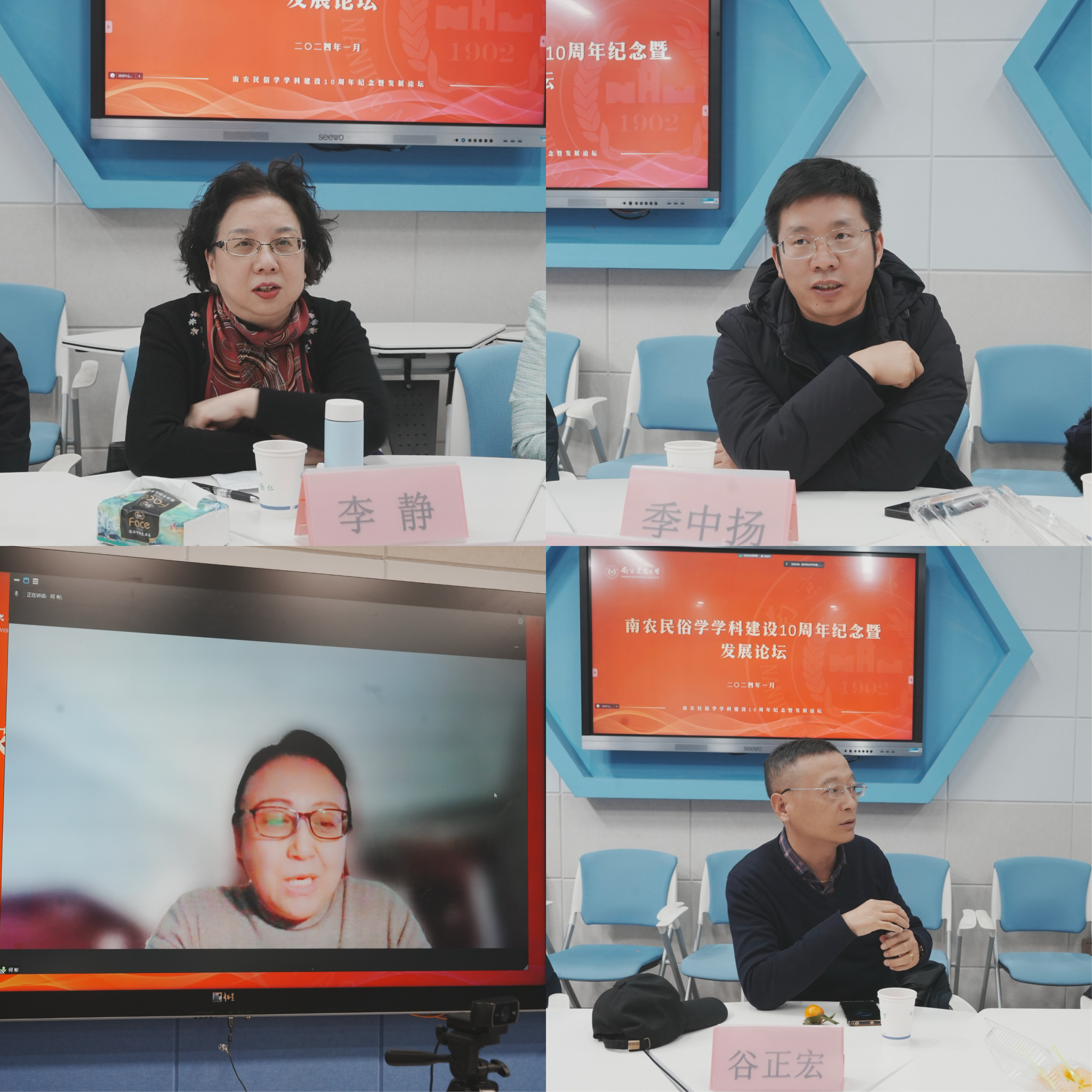 随后,李静对学科点建设10年来的发展成就表示祝贺,指出应当立足聚焦民俗学本土学科资源优势,整合师资队伍力量,形成南农民俗学团队的“拳头型”高质量研究成果。季中扬认为,应当增强学科点首席专家的影响力,通过交叉学科建设等路径,未来努力在博士点建设上有所突破。谷正宏提出学科点应当服务乡村全面振兴和中国式现代化的战略大局,继续加强校外社会资源的合作与交流力度。何彬、阎莉、张兴宇、张娜、朱志平及研究生代表朱志明、杨雨桐也分别从团队凝聚力、学科资源利用、研究生培养等方面分享了关于未来民俗学学科建设的思考。