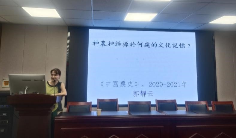 6月8日上午9时,由科学技术史系承办的万国鼎学术讲座顺利举行。中正大学郭静云教授应邀作了题为“神农神话来源考”的学术讲座。科学技术史系主任沈志忠教授、朱锁玲教授、夏如兵副教授、黎海明副教授、吴昊老师、旅游系苏静副教授一同出席本次讲座。学院文化遗产专业本科生,科学技术史专业硕士、博士研究生共70余人在逸夫楼6047会议室聆听了讲座。讲座由沈志忠主持。