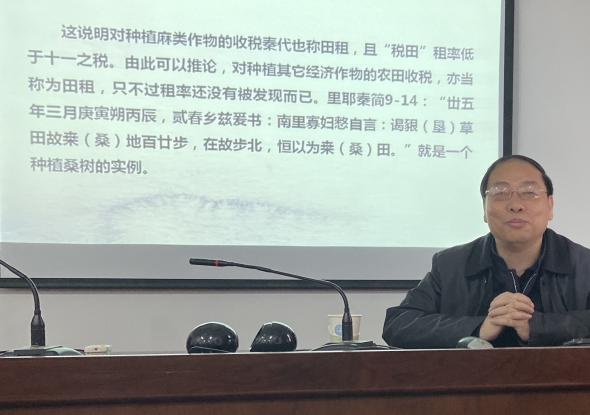 11月27日上午9点50分,南京师范大学历史系教授晋文莅临18av ,在逸夫楼6046教室为18av 师生作了题为“秦及汉初的田租征收方式”的学术讲座。讲座由科技史系主任沈志忠教授主持,18av 科技史、社会工作、法学等专业的硕士和博士研究生,以及相关专业的老师参加了讲座。