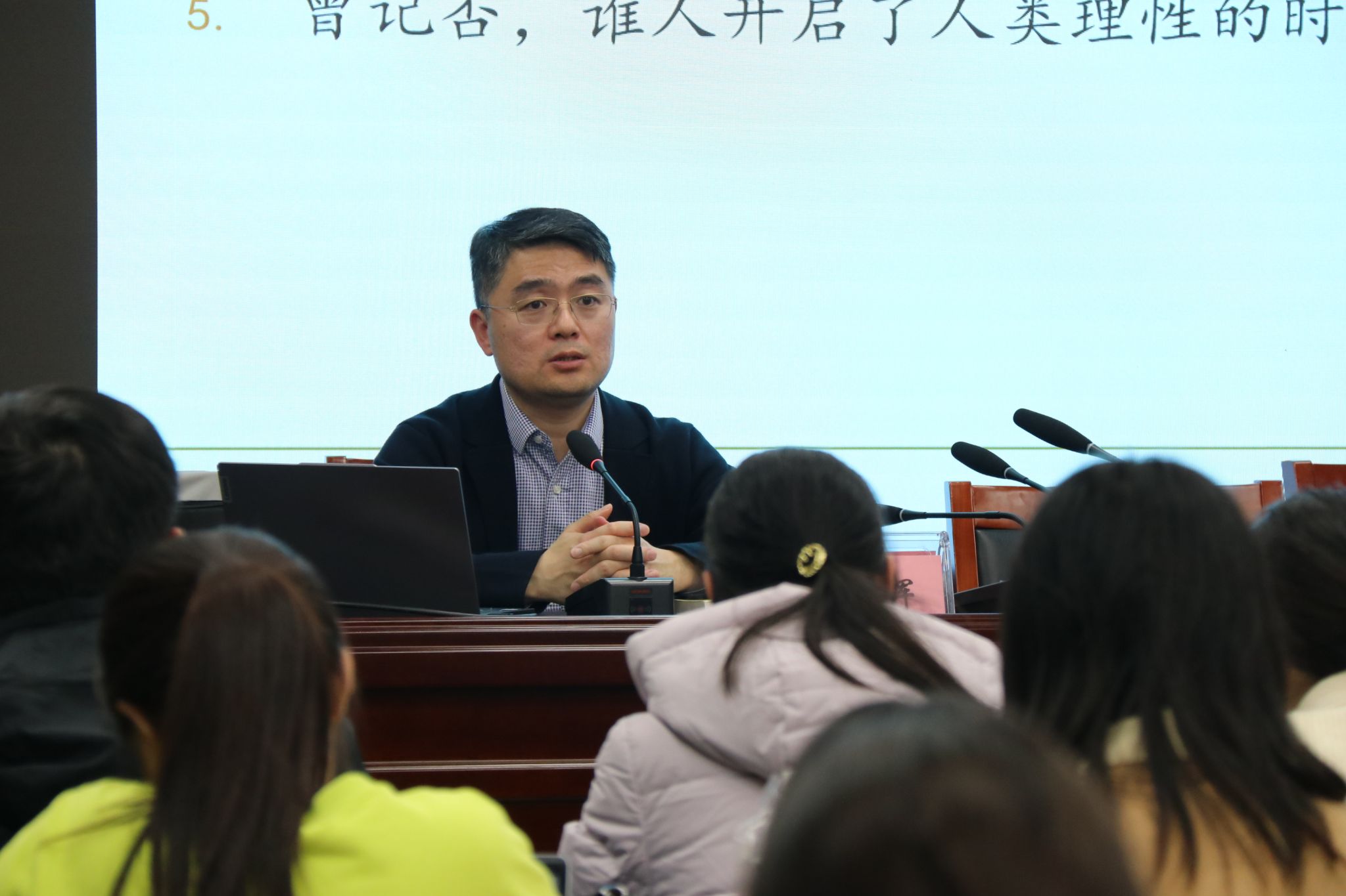 师生近百人在逸夫楼6047会议室聆听了讲座。讲座由18av