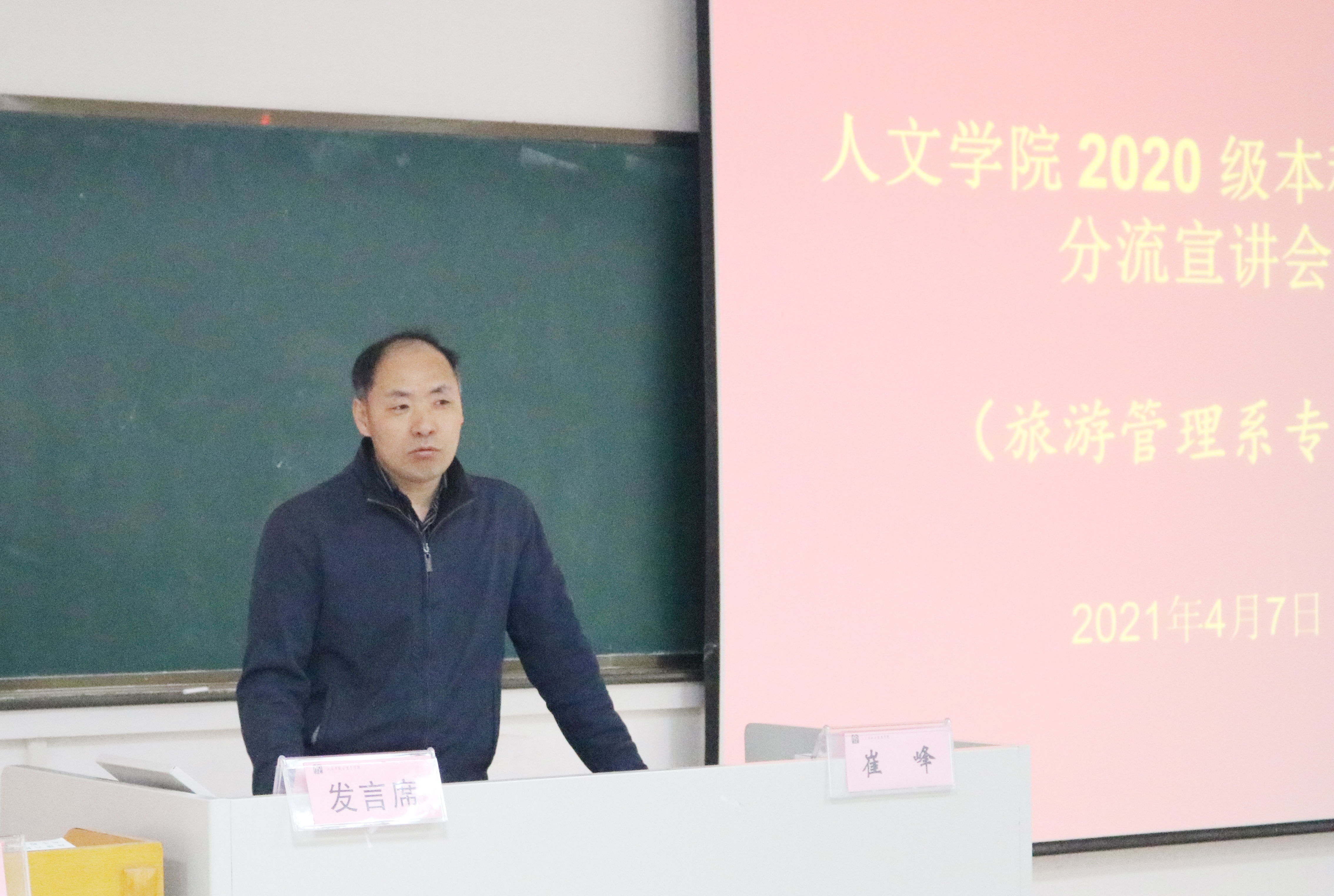 宣讲会第一个环节,由崔峰介绍旅游管理专业及旅游管理系情况。他从旅游管理专业的学科归属、研究对象、研究内容、专业属性和行业特点等方面,就旅游管理专业的总体情况作了简要介绍;重点围绕18av