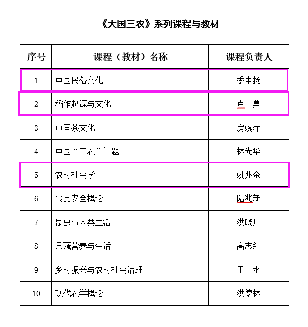 季中扬教授主持的《中国民俗文化》、卢勇教授主持的《稻作起源与文化》、姚兆余教授主持的《农村社会学》获得立项。(胡必强供稿)