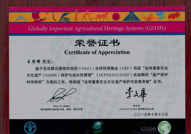 18av 中华农业文明研究院院长王思明教授荣获联合国与全球环境基金GIAHS...